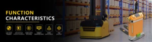 It is an automatic guided forklift module developed based on the Techsorta standard electric stacker truck. The rated load is 1200kg, the lifting height is 1800MM, and the minimum channel width is about 2300mm, which improves the flexibility of load stacking. The AGV car has a precise fork insertion function, which can self-correct and adjust the fork insertion posture according to the actual placement posture of the target pallet. The angle control accuracy of the fork attitude can reach ±0.5°, and the deviation accuracy of the transverse central axis of the fork from the displacement is ±10 mm. The product can optionally be equipped with modules such as damaged tray detection and obstacle detection to ensure safety. Modules such as handheld terminals and automatic charging devices can be optionally selected to meet customer project customization needs.